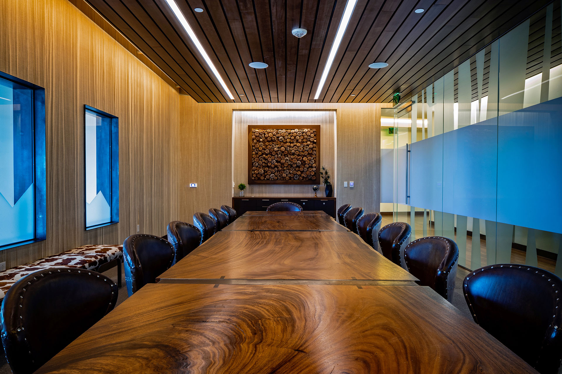 Let your imagination run wild in the Treehouse, an intimate conference room with stunning wood and leather textures.